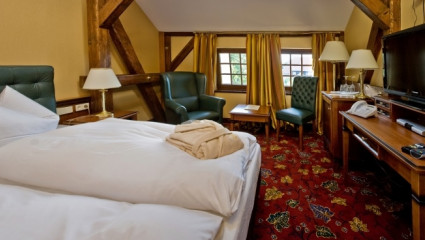 Schloss mit 9 luxuriösen, individuell eingerichteten Suiten, Residenz mit 6 DZ Deluxe, 4 Juniorsuiten und 2 Suiten in elegantem Landhausstil eingerichtet.