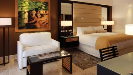 Elite Patio: ca. 65 qm, die Zimmer sind mit eleganten Möbeln und Korallenstein gestaltet. Begehbarer Kleiderschrank, Bad mit sep. Dusche und sep. WC, Föhn, Bademantel, TV (Flachbildschirm) mit Blue-ray DiscTM-Player, iPod®-Station, Telefon, Internetzugang (WLAN, inklusive), Bügeleisen/-brett, Klimaanlage, Minibar, Kaffeemaschine, Safe, Terrasse mit Gartenblick oder Blick auf den Golfplatz.