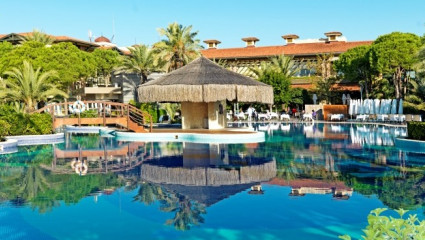 Das Gloria Golf Resort ist ein 5 Sterne Hotelkomplex mit zwei hauseigenen 18-Loch Meisterschaftsplätzen und einem 9-Loch Golfplatz. Die Anlage ist im traditionellen Stil erbaut und besteht aus einem 4-stöckigen Hauptgebäude und mehreren Villen in einer traumhaft gestalteten Gartenanlage. Insgesamt gibt es 515 Zimmer, davon über 200 luxuriöse Suiten und Villen. Sie haben außerdem die Wahl aus einem vielfältigen Sportangebot, als auch aus erholsamen Behandlungen im eigenen Spa & Wellness Center.