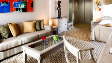 Zur Hauptausstattung zählen: Kartenschlüsselsystem, Bad, WC, Direktwahltelefon, Plasma-Sat.-TV, Klimaanlage, Heizung, Minibar, Safe, Balkon/Terrasse, WLAN-Internetzugang.