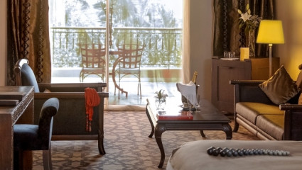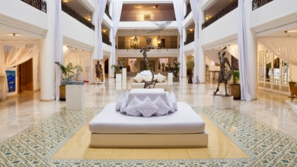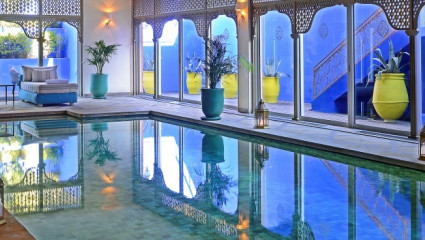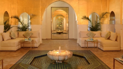 Dieses Luxushotel in Marrakesch kombiniert moderne Kunst und Skulpturen im Viertel Hivernage, wo sich lokale Gastfreundschaft und Gastronomie mit der kosmopolitischen Eleganz der französischen Kultur vermischen. Beleben Sie Ihre Sinne in diesem 5-Sterne-Hotel in Marrakesch mit den Aromen frischer Minze, Massagen, klaren Linien, sanften Farben und Gewürzen aus dem Garten. Eine wahre Freude - genau wie der Ausblick aus Ihrem eleganten Zimmer: Palmen, Bougainvilleen und das schneebedeckte Atlasgebirge.