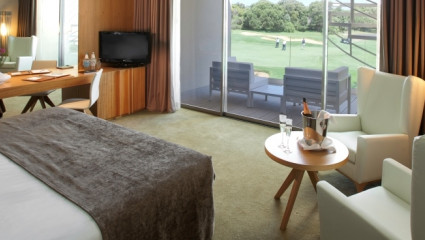 Umgeben von einem herrlichen Garten befindet sich das Onyria Marinha Edition Hotel & Thalasso in Cascais. Es bietet einen herrlichen Blick auf die Berge von Sintra und den Atlantik, dessen nächster Strand kaum zwei Kilometer entfernt liegt. Die Gäste des exklusiven Fünf-Sterne-Hauses können ein erfrischendes Bad in den Innen-und Außenpools genießen oder sich im großzügigen Thalasso-Spa mit Hydrotherapie-Pools bei einer Massage mit organischen Ölen verwöhnen lassen. Sportlich aktiven Urlaubern stehen Tennisplätze und ein Fitness- Center mit Cardio-Geräten zur Verfügung. Der Golfplatz Quinta da Marinha liegt in unmittelbarer Nachbarschaft. Kulinarische Vielfalt wird den Urlaubern in mehreren Restaurants und Bars des modernen Boutique-Hotels angeboten.Zimmer