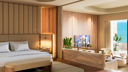 Bereits das Basissortiment glänzt mit großzügigen Seascape-Suiten (110 m²), ausgestattet mit Infinity-Pool, Terrasse und Butler-Service. Das Angebot reicht bis hin zu gigantischen Villen – ganz nach Wunsch mit privatem Spa, Pool und persönlichem Assistenten.